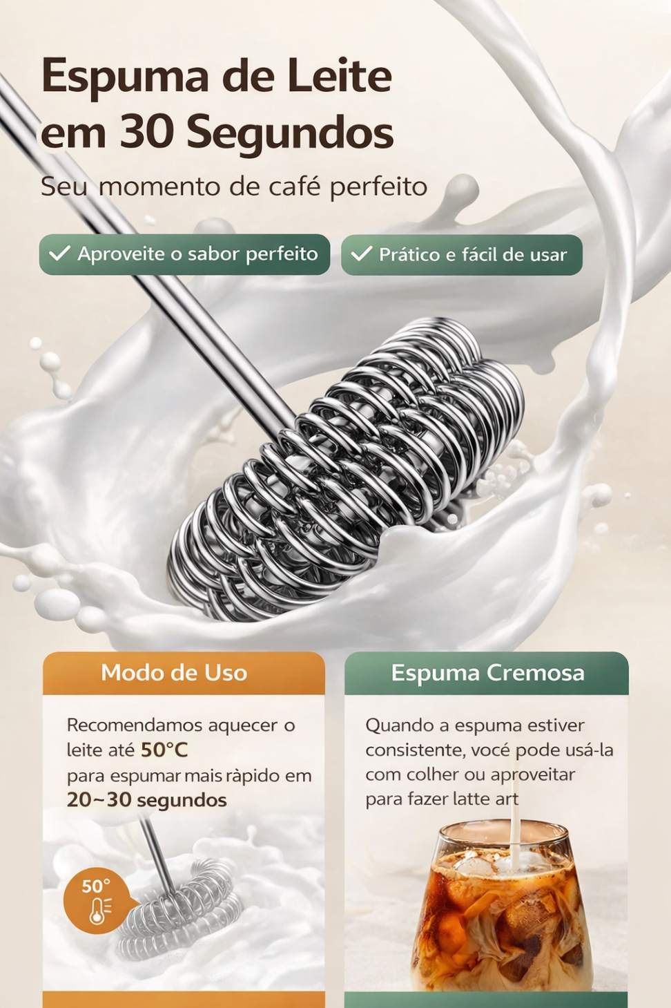Crie espuma cremosa para café, cappuccino, chocolate quente e muito mais. Resultados profissionais sem sair de casa.