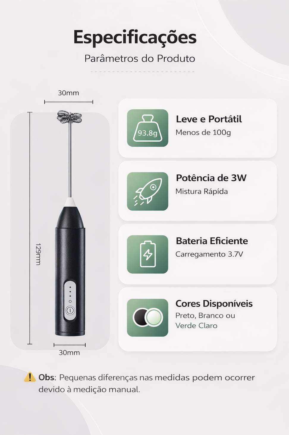 Chega de bebidas mal misturadas, com espuma fraca ou cheias de grumos. Com o Mixer Elétrico Portátil, você prepara bebidas cremosas e homogêneas em poucos segundos.